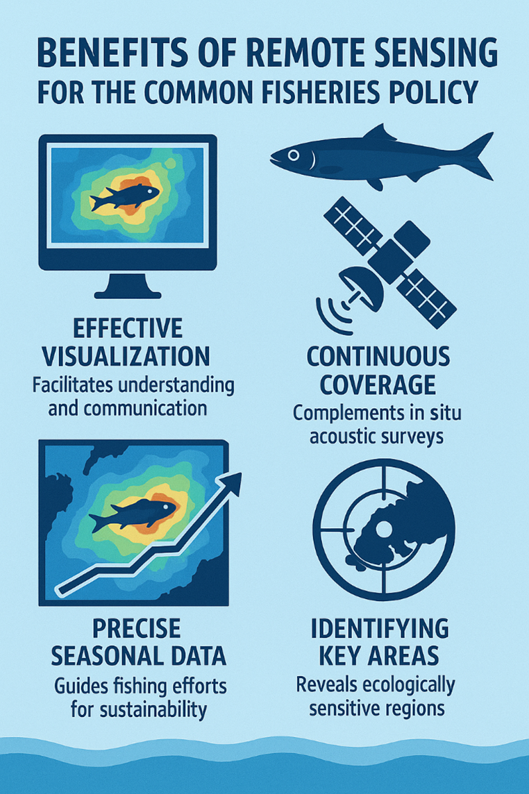 Small pelagic fish such as anchovy and sardine are essential to marine ecosystems and coastal economies. They form a critical link in the food web, supporting biodiversity while also providing an affordable and widely consumed food source across the Mediterranean and Europe. Ensuring their sustainable management is therefore vital for both environmental balance and human livelihoods.The FishHAB project uses advanced satellite data and modelling techniques to improve how these species are monitored and managed. By leveraging data from the Copernicus Marine Service and research developed at the University of the Aegean, the project maps Habitat Suitability—identifying where environmental conditions are most favorable for these fish.The system combines key oceanographic indicators such as sea surface temperature, chlorophyll levels, ocean fronts, and bathymetry, applying machine learning models to predict spatial distribution patterns. These models have already been developed and validated and are now being refined to better support decision-making by national authorities. A key feature of FishHAB is its focus on responsible data use. Instead of providing exact fish abundance, the service delivers a Habitat Suitability Index (HSI), reducing the risk of over-exploitation while still offering valuable insights. Data are also aggregated over longer time periods to prioritize strategic planning over short-term commercial use. Initially focused on Greek seas, the service is designed to be scalable to other regions where suitable data are available.FishHAB supports evidence-based policy and sustainable fisheries management by: